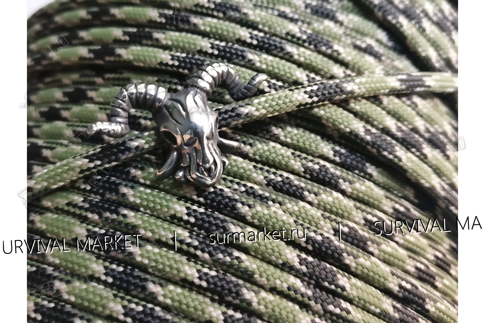 В отверстие влезает два шнура 550 паракорда (с трудом).