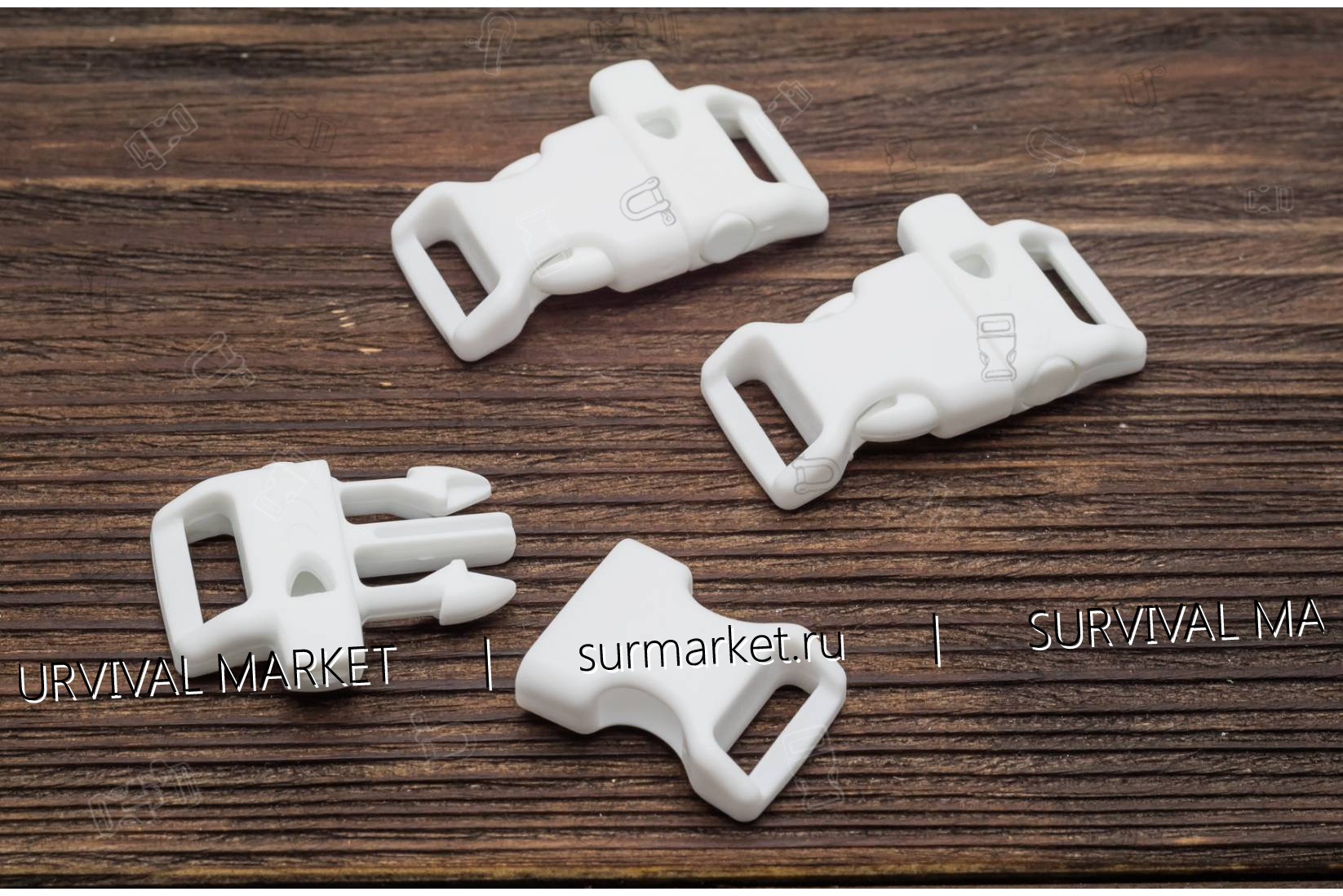 Защелка Фастекс (Fastex) со свистком подходит для браслетов из паракорда, так как имеет изогнутую форму. Цвет: белый.