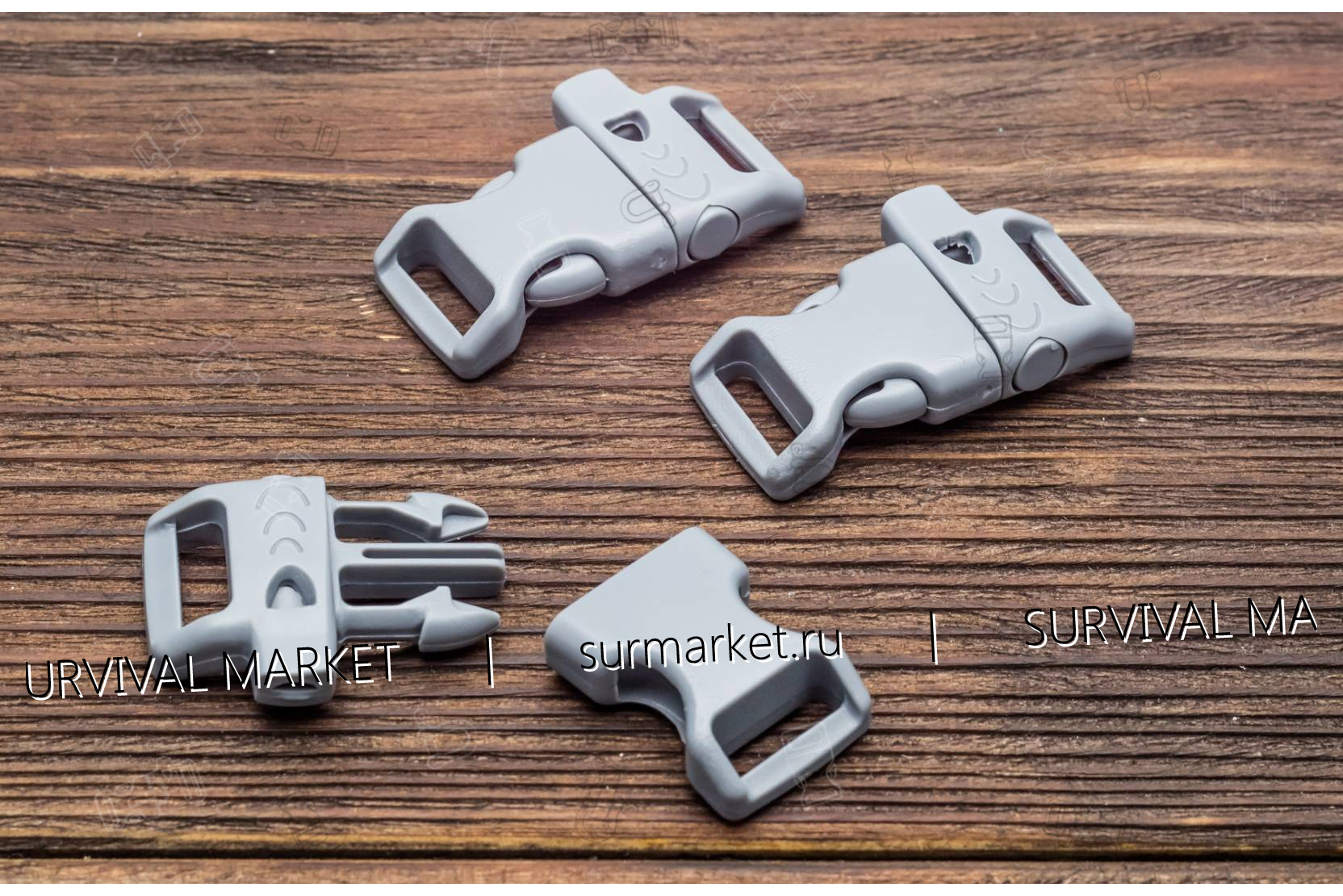Защелка Фастекс (Fastex) со свистком подходит для браслетов из паракорда, так как имеет изогнутую форму. Цвет: серый.